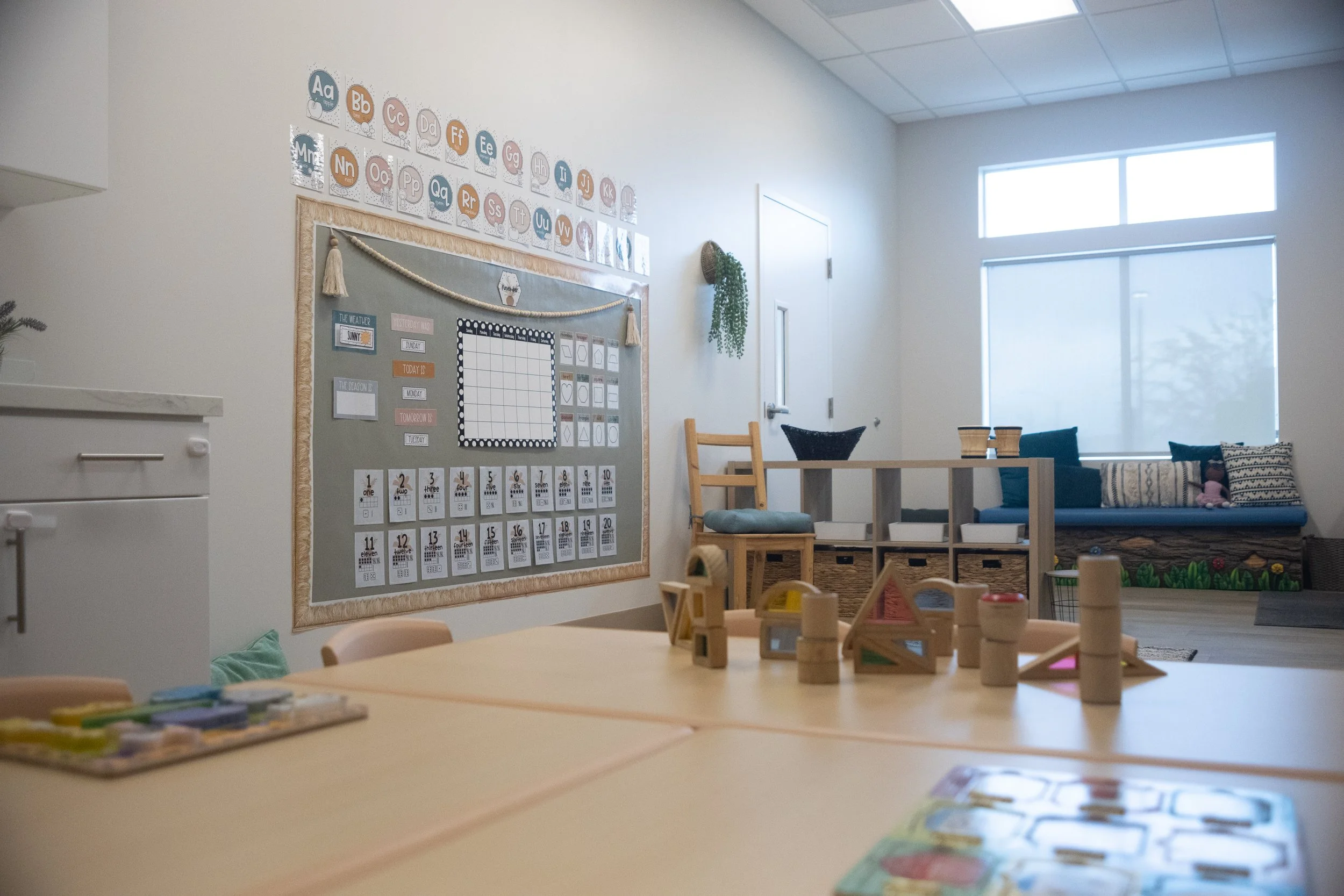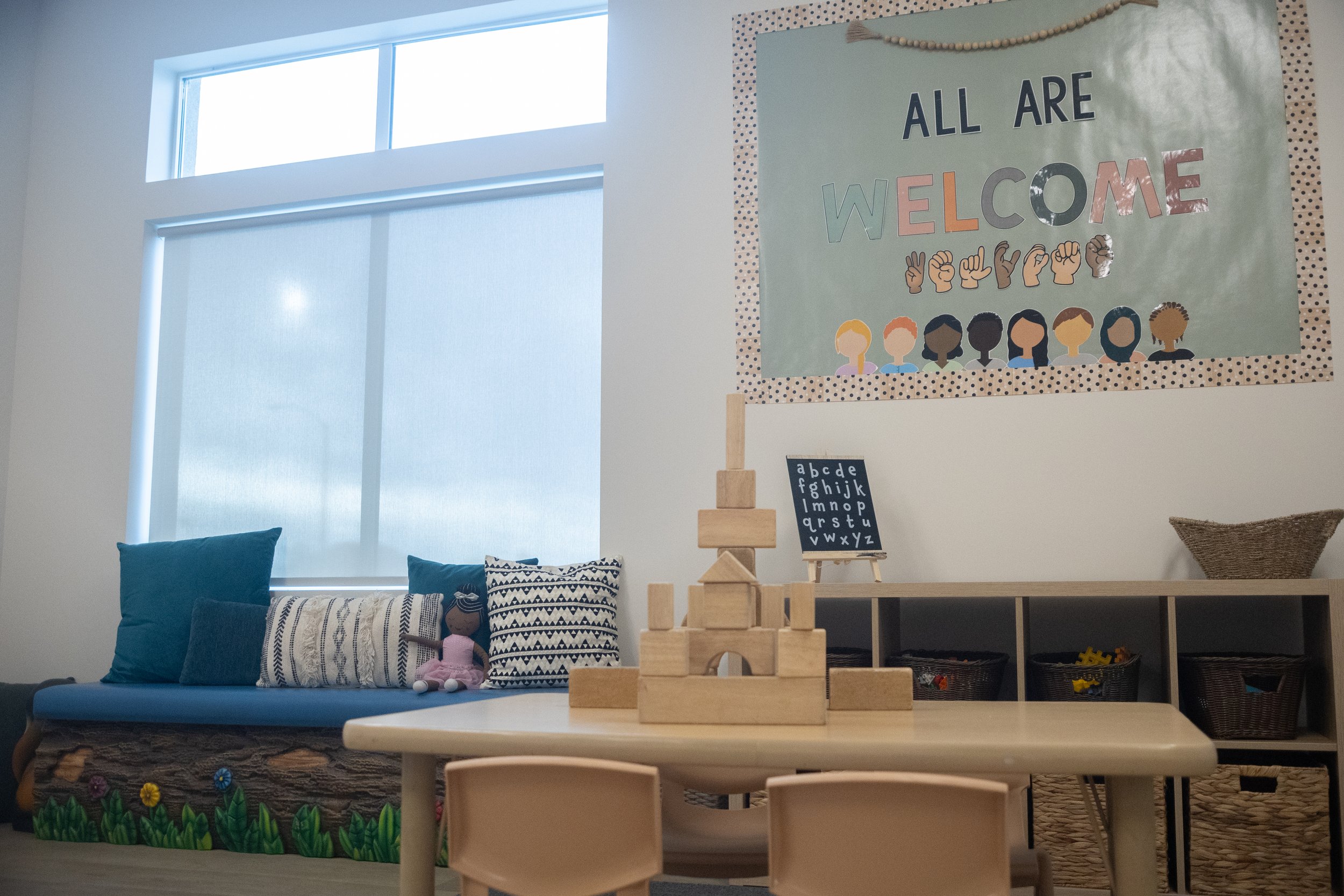 The Dolphins environment helps prepare them for their next stage of learning. Now they are preparing to move on to our TK program (Sharks) or public school TK. The room is typically divided into various activity centers, each catering to different areas of learning and play. They have spaces to work both independently and together.
