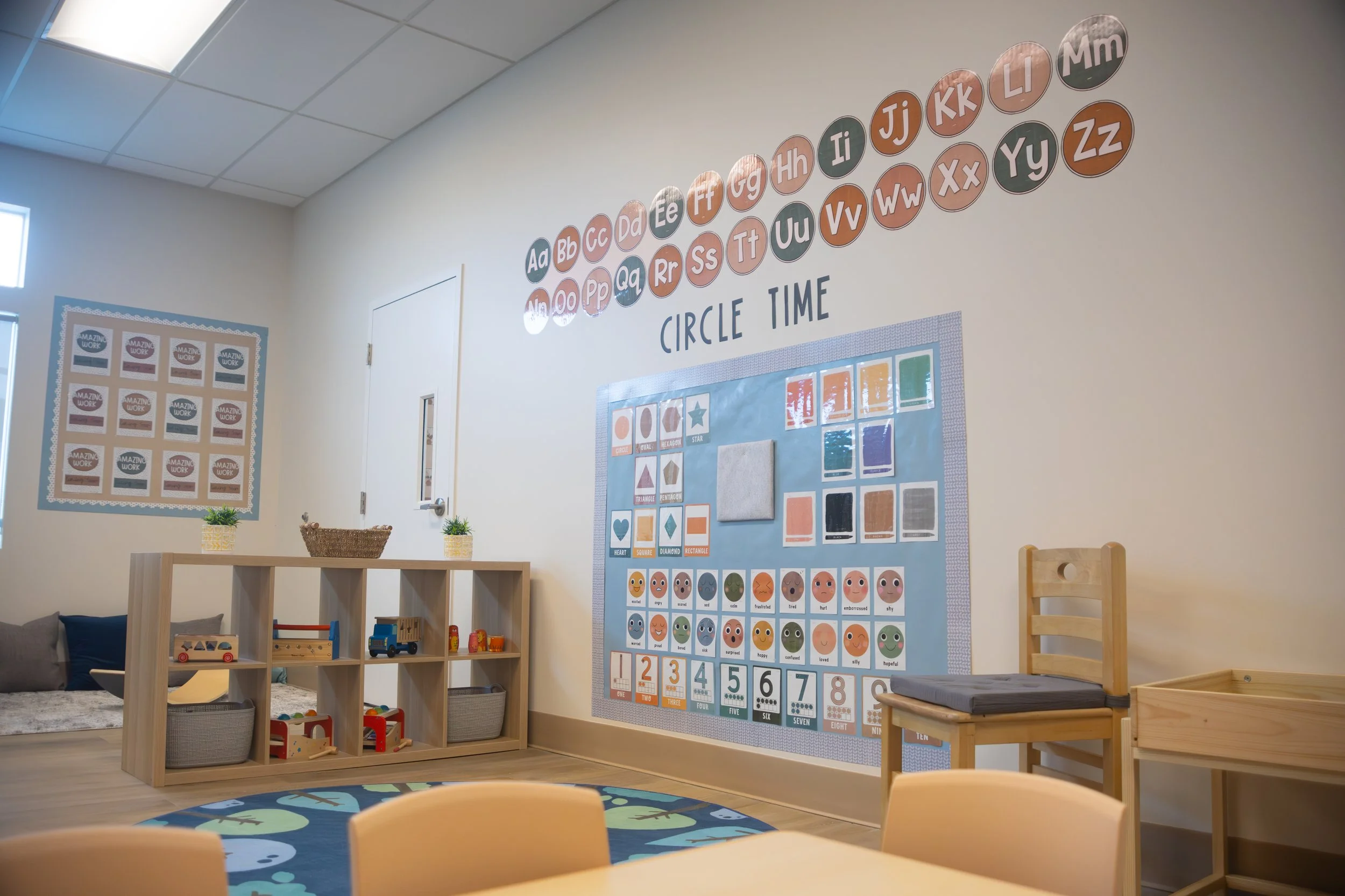 During Circle Time, the children read 2–3 theme-based storybooks. They are introduced to colors, shapes, numbers, and letters through stories, songs, and finger plays.