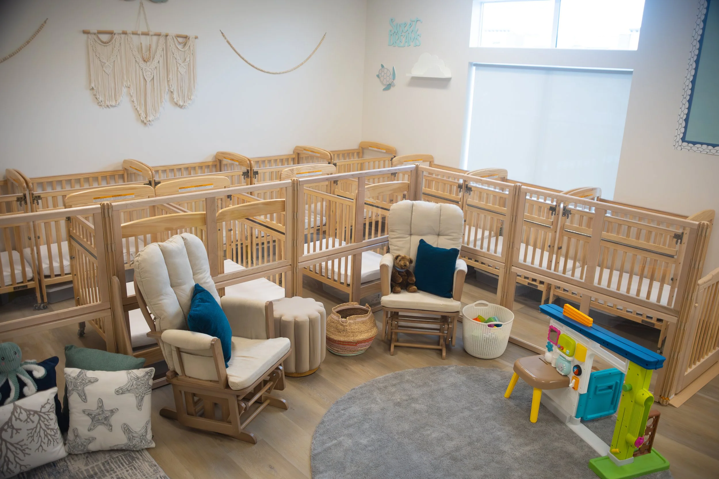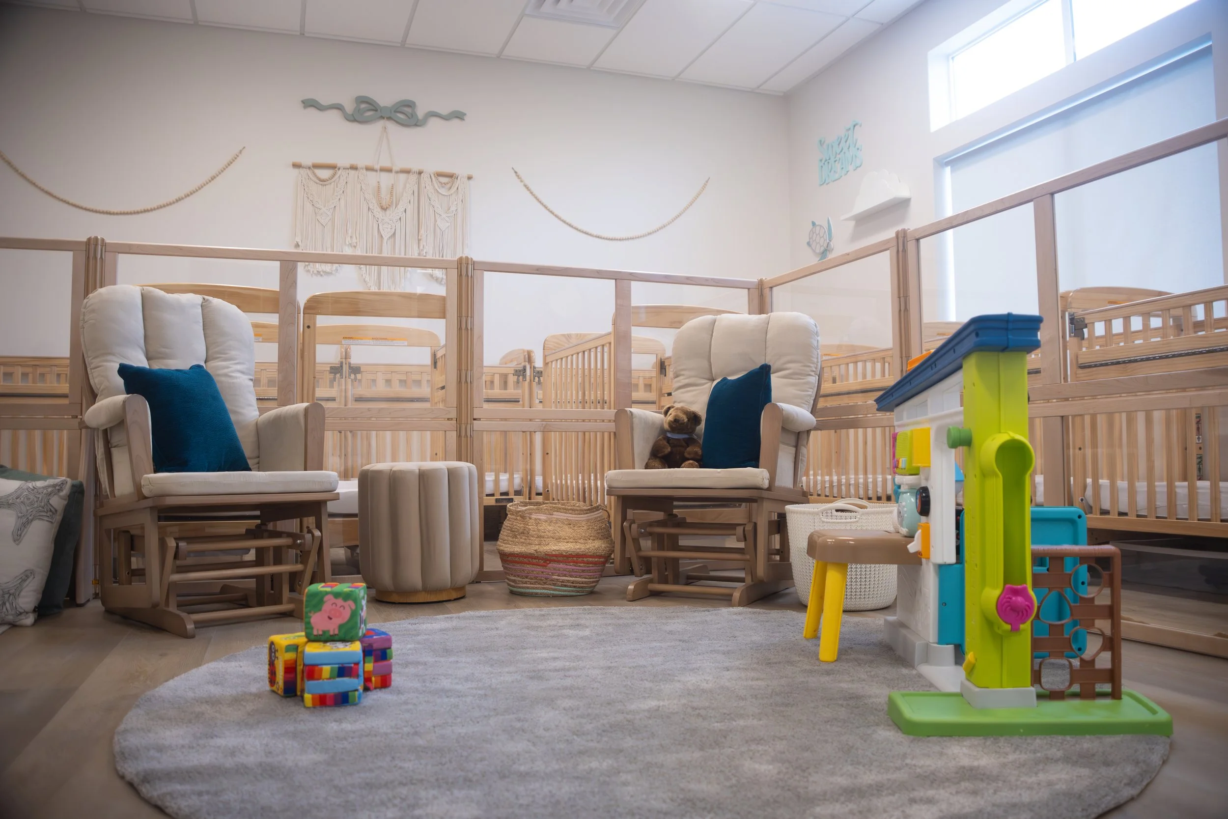 Our little ones are provided with a safe and nurturing environment that encourages exploration and supports their development. Toys and learning materials are thoughtfully displayed throughout the classroom in inviting ways that inspire curiosity and independent discovery. As they grow and gain confidence, we gently and carefully guide their first steps, celebrating each milestone along the way.